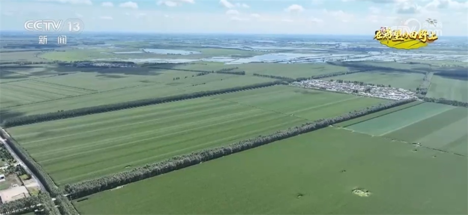 總臺央視記者 蔣樹林:這里是國家耐鹽堿水稻技術創(chuàng)新中心東北中心的千畝示范園,我手指的這個方向是沒有利用過的原始風貌的鹽堿荒灘,這邊是已經(jīng)改造后生長水稻的鹽堿地。如果后期沒有大的自然災害,今年豐收會有一定基礎。