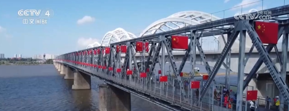 假日期間,擁有100多年歷史的松花江濱洲鐵路橋,在800面五星紅旗的裝飾下,成了眾多市民游客抒發(fā)愛(ài)國(guó)情懷的“祝愿橋”。