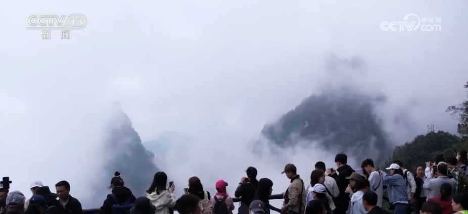 在湖南張家界,天門(mén)山國(guó)家森林公園迎來(lái)了旅游高峰。雨后出現(xiàn)的云海景觀,好似一幅山水畫(huà)卷,漫天的云海圍繞著群峰翻騰起伏,顯得十分靈動(dòng)秀美,吸引了不少游客“打卡”拍照。這個(gè)假期,當(dāng)?shù)夭扇×藢?shí)名制分時(shí)預(yù)約、無(wú)紙化智慧入園、提前售票時(shí)間等多種舉措引導(dǎo)客流。