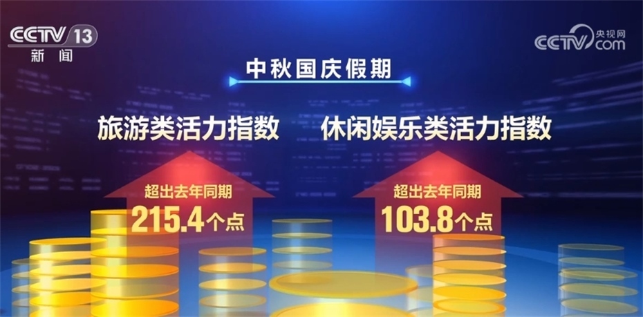 ??????服務消費迅猛增長。各地在交通出行、景區(qū)預約、酒店住宿等方面提供便利,提升消費體驗。國家信息中心基于消費訂單數據研究后發(fā)現,中秋國慶假期,我國生活服務消費活力指數日均值同比去年同期高出47.1個點;旅游、休閑娛樂類活力指數更是超出去年同期215.4個點和103.8個點,服務業(yè)正處于快速恢復的景氣區(qū)間。