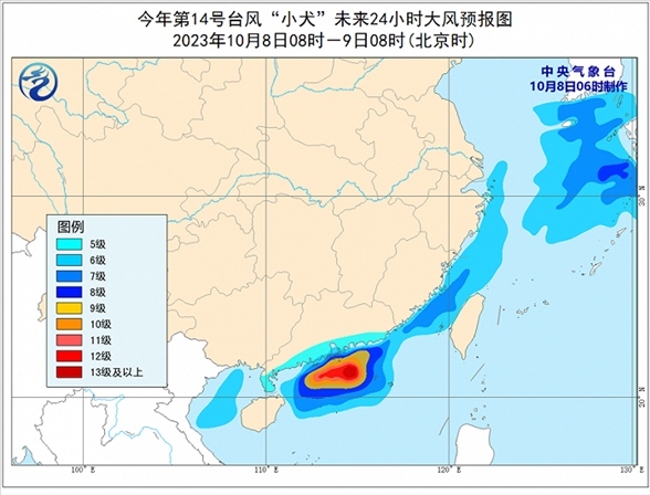 昨日,“小犬”給浙江東部、福建南部、廣東東部等地帶來(lái)明顯風(fēng)雨,廣東揭陽(yáng)、汕頭局地大暴雨。預(yù)計(jì)未來(lái)24小時(shí),受冷空氣和“小犬”共同影響,臺(tái)灣島東北部、廣東中部沿海、珠江口附近將有大到暴雨、局地大暴雨(100-150毫米);東海大部、臺(tái)灣海峽、南海北部、北部灣以及浙江沿海、福建沿海、廣東沿海將有6-8級(jí)、陣風(fēng)9-10級(jí)的大風(fēng),其中廣東沿海、南海北部的部分海域?qū)⒂?-11級(jí)、陣風(fēng)12-13級(jí)的大風(fēng),“小犬”中心經(jīng)過(guò)的附近海面風(fēng)力有12-14級(jí),陣風(fēng)15-16級(jí)。