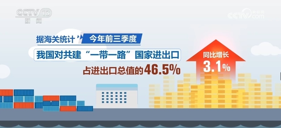 據(jù)海關(guān)統(tǒng)計,2023年前三季度,我國對共建“一帶一路”國家進出口同比增長3.1%,占進出口總值的46.5%。