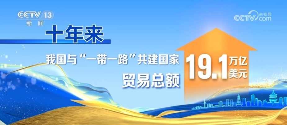 “高”是指貿(mào)易額。十年來,我國(guó)與“一帶一路”共建國(guó)家的進(jìn)出口貿(mào)易快速增長(zhǎng),貿(mào)易總額達(dá)到了19.1萬億美元。