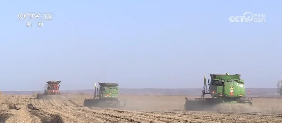 北大荒集團(tuán)趙光農(nóng)場有限公司第九管理區(qū)副主任 周磊:半鏈軌過去之后,不破壞壟型,不誤車,能加快秋收的作業(yè)速度。我們預(yù)計(jì)在(10月)18日大豆全部收獲結(jié)束。