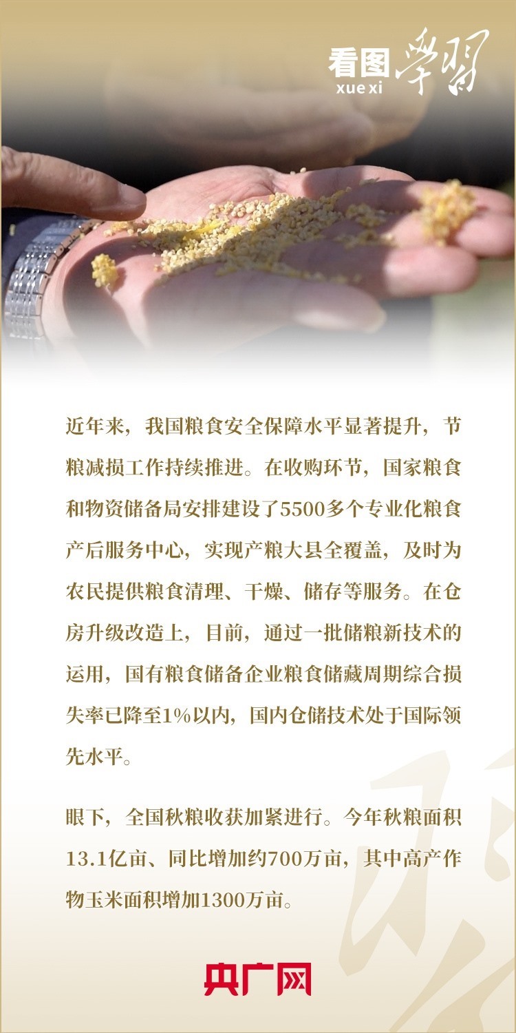 糧食安全是“國之大者”。黨的十八大以來,習(xí)近平總書記在地方考察調(diào)研期間,常常走進(jìn)田間地頭,看長勢、問收成,多次強(qiáng)調(diào)“中國人的飯碗任何時候都要牢牢端在自己手中”,“保障糧食安全,要在增產(chǎn)和減損兩端同時發(fā)力”。讓14億多人吃飽吃好,總書記始終念茲在茲。今天是世界糧食日,一起來學(xué)習(xí)!