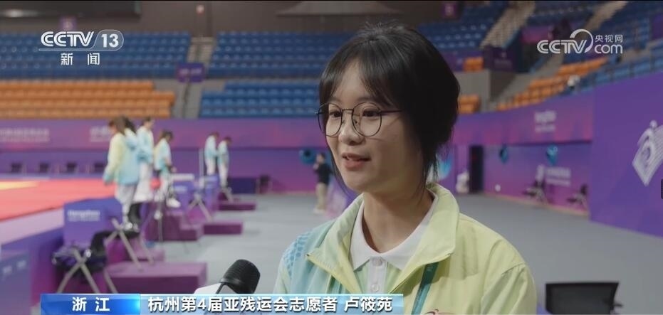 杭州第4屆亞殘運會志愿者 盧筱苑:經(jīng)過前期的線上培訓(xùn)以及線下的實操訓(xùn)練,我們已經(jīng)掌握了如何更好地服務(wù)殘障人士,我們需要更加熟悉場館的環(huán)境,為他們提供更加準確的指引,提供更加細微周到的服務(wù)。