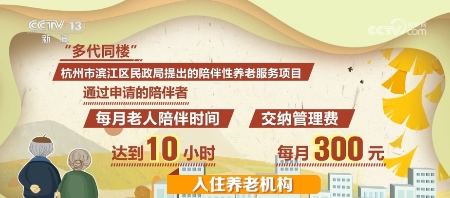 “多代同樓”是由浙江省杭州市濱江區(qū)民政局提出的陪伴性養(yǎng)老服務(wù)項(xiàng)目。通過申請的陪伴者每月只需達(dá)到10小時(shí)的老人陪伴時(shí)間,并交納每月300元的管理費(fèi),就可以入住這家養(yǎng)老機(jī)構(gòu)。