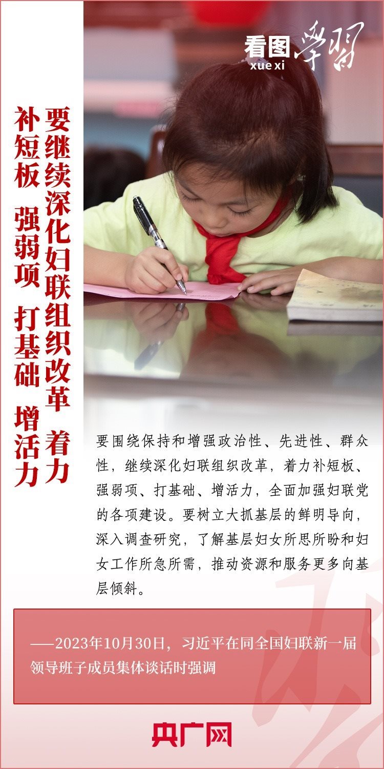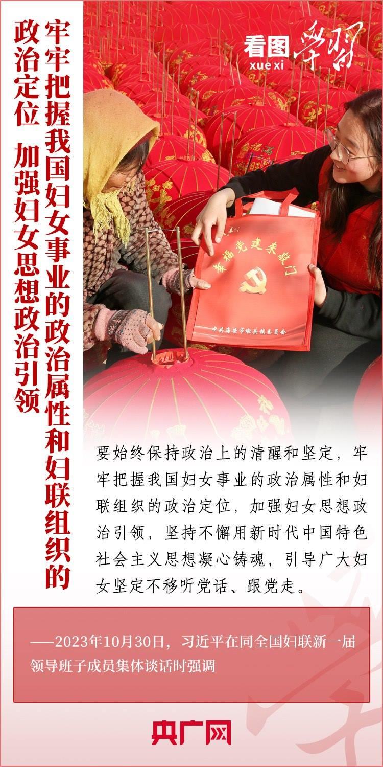 10月30日下午,習(xí)近平總書記同全國(guó)婦聯(lián)新一屆領(lǐng)導(dǎo)班子成員集體談話并發(fā)表重要講話。總書記強(qiáng)調(diào),要堅(jiān)定不移走中國(guó)特色社會(huì)主義婦女發(fā)展道路,激勵(lì)廣大婦女自尊自信、自立自強(qiáng),奮進(jìn)新征程、建功新時(shí)代,為中國(guó)式現(xiàn)代化建設(shè)貢獻(xiàn)巾幗智慧和力量。一起來學(xué)習(xí)!