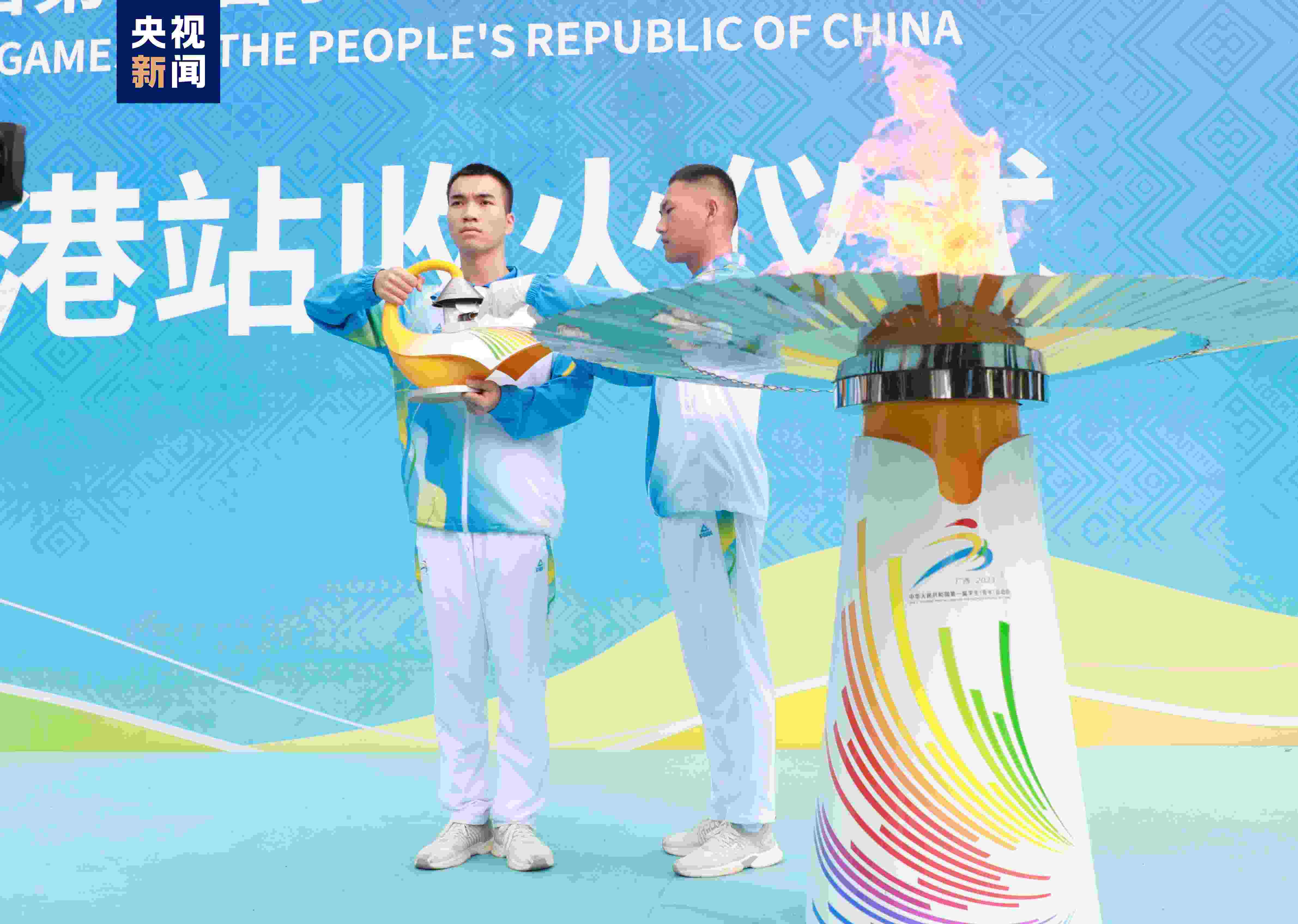 最后一棒火炬手完成最后100米接力后,用火炬點燃圣火盆,隨后火種護(hù)衛(wèi)引回火種,這也標(biāo)志著首屆學(xué)青會火炬?zhèn)鬟f在貴港完成傳遞,將奔赴下一站——南寧。