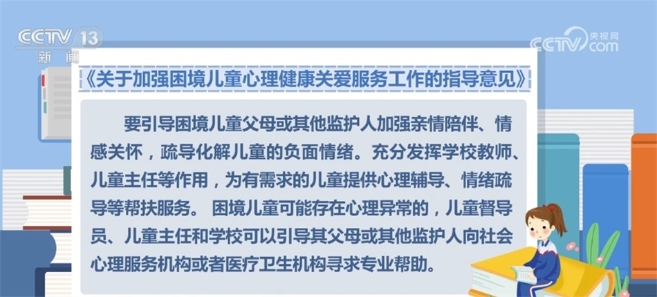 央視網(wǎng)消息:近日,民政部等五部門聯(lián)合印發(fā)《關于加強困境兒童心理健康關愛服務工作的指導意見》,通過加強心理健康教育、開展心理健康監(jiān)測等措施,全面提升困境兒童心理健康水平和身心健康素質。
