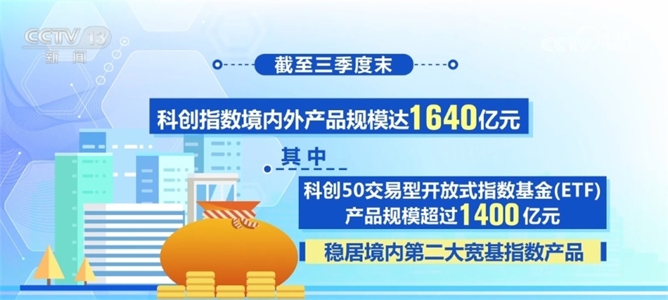 數(shù)據(jù)顯示,截至三季度末,科創(chuàng)指數(shù)境內(nèi)外產(chǎn)品規(guī)模達1640億元,其中,科創(chuàng)50交易型開放式指數(shù)基金(ETF)產(chǎn)品規(guī)模超過1400億元,穩(wěn)居境內(nèi)第二大寬基指數(shù)產(chǎn)品。