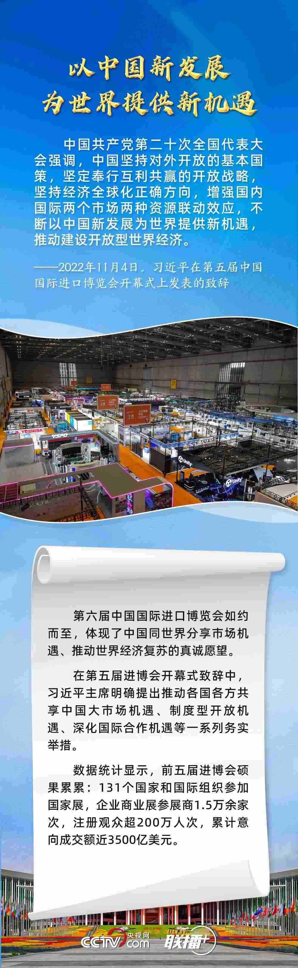 “中國擴大高水平開放的決心不會變,同世界分享發(fā)展機遇的決心不會變,推動經(jīng)濟全球化朝著更加開放、包容、普惠、平衡、共贏方向發(fā)展的決心不會變?!蔽迥陙?,習近平主席在進博會上宣布一系列重大開放舉措,充分彰顯了中國致力于促進世界經(jīng)濟包容性增長,建設開放型世界經(jīng)濟的信心與決心。