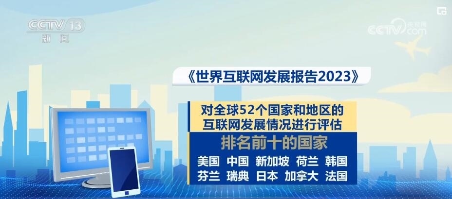 報(bào)告對(duì)全球52個(gè)國家和地區(qū)的互聯(lián)網(wǎng)發(fā)展情況進(jìn)行了評(píng)估,今年排名前十的國家為美國、中國、新加坡、荷蘭、韓國、芬蘭、瑞典、日本、加拿大、法國。