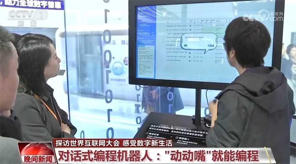 在此次互聯(lián)網(wǎng)之光博覽會的數(shù)字技術(shù)展區(qū),有數(shù)十家科技企業(yè)都展出了人工智能大語言模型應(yīng)用產(chǎn)品,覆蓋了日常生活、生產(chǎn)制造、安全防護等多個行業(yè)領(lǐng)域。這是一款對話式編程機器人,通過基于人工智能大模型的應(yīng)用平臺,非專業(yè)人士不用學(xué)寫代碼,只要“動動嘴”就能編寫相關(guān)應(yīng)用程序,并通過指令來完成多種日??此品爆嵉牟僮鳌?/p>