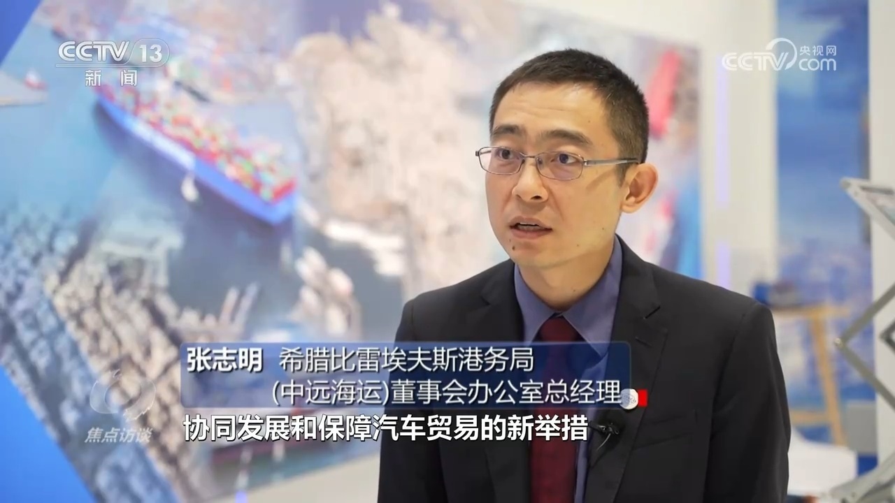 張志明:“第五屆進博會上,比港與中遠海運集團共同推出了協(xié)同發(fā)展和保障汽車貿(mào)易的新舉措。進博會后,2022年11月,一艘多用途船??勘雀?,卸下來的不是普通的貨物,而是用特制框架箱裝運的中國汽車,這些汽車在比港卸下后,通過陸路和水路分撥到歐洲其他地方?!?/p>