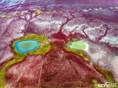 2023年11月13日,初冬時節(jié),江蘇鹽城東臺條子泥濕地,成片的蒿子草造就的“紅海灘”,與遷徙的候鳥、棲息的麋鹿以及潮汐形成的地貌,勾勒出一幅幅濕地的自然生態(tài)美圖。