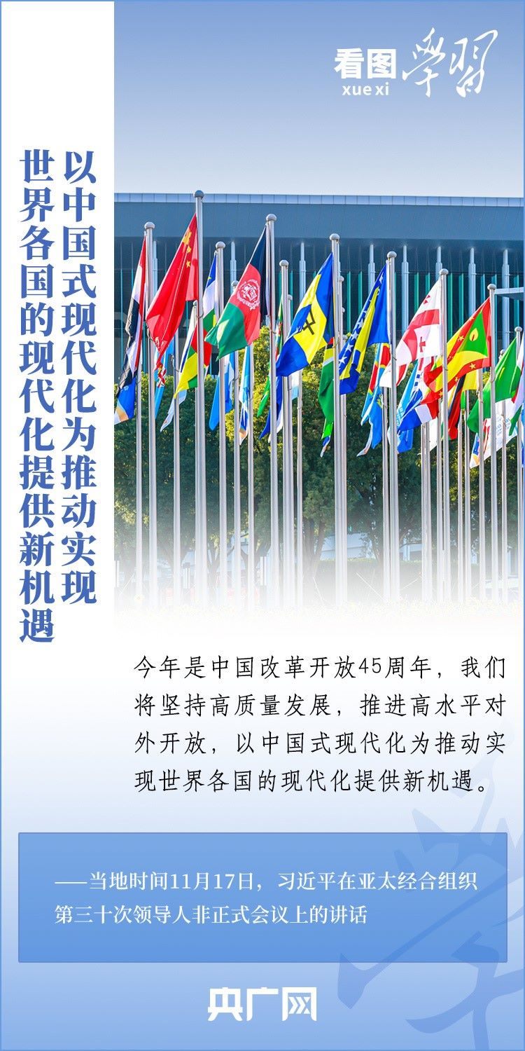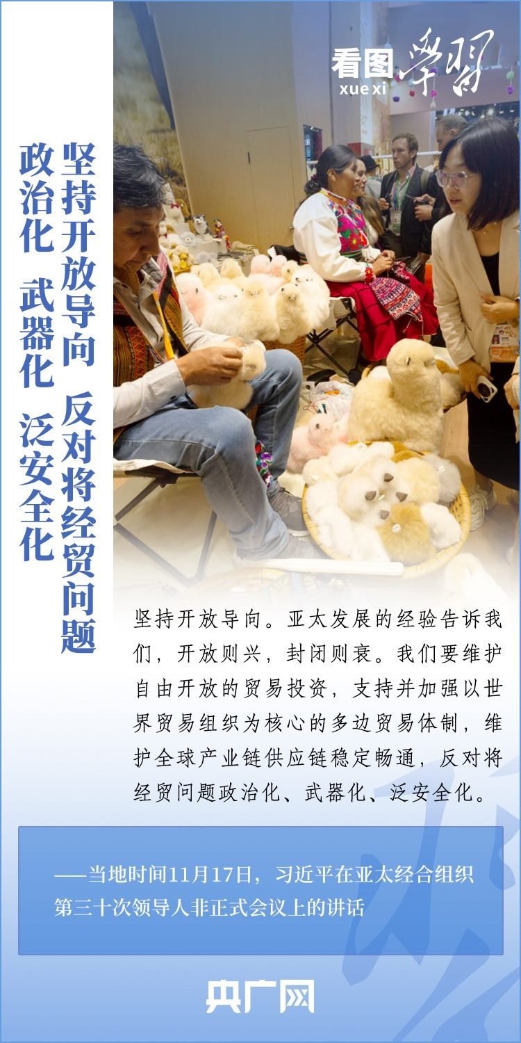 當(dāng)?shù)貢r(shí)間11月17日上午,亞太經(jīng)合組織第三十次領(lǐng)導(dǎo)人非正式會(huì)議在美國(guó)舊金山舉行。國(guó)家主席習(xí)近平出席會(huì)議并發(fā)表題為《堅(jiān)守初心 團(tuán)結(jié)合作 攜手共促亞太高質(zhì)量增長(zhǎng)》的重要講話。習(xí)主席在講話中全面闡述了中國(guó)對(duì)深化亞太合作、促進(jìn)地區(qū)和世界經(jīng)濟(jì)增長(zhǎng)的重要主張,以“四個(gè)堅(jiān)持”提出多項(xiàng)務(wù)實(shí)舉措,希望同各方一道努力,共同打造亞太下一個(gè)“黃金三十年”。一起來學(xué)習(xí)!