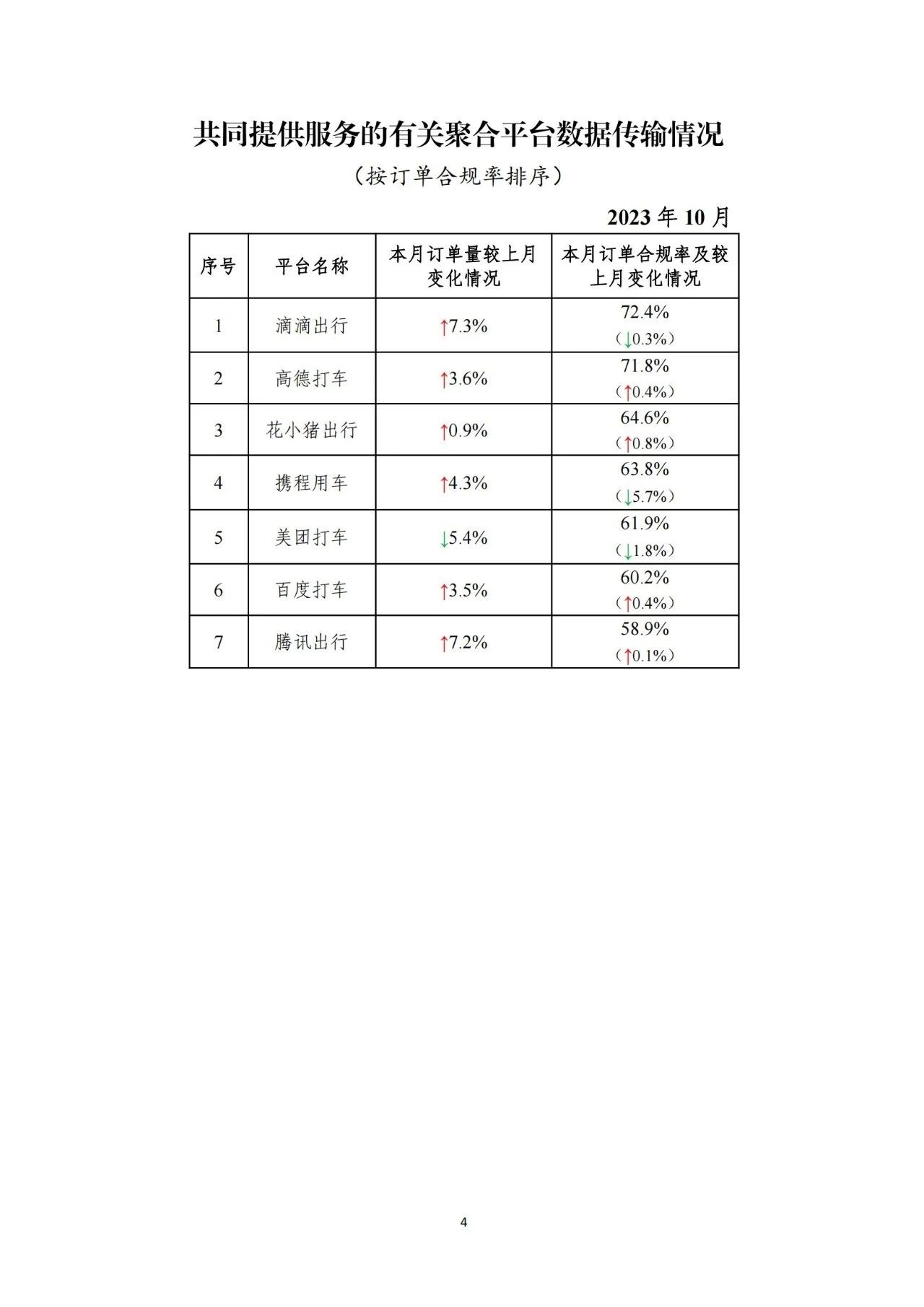 央視網(wǎng)消息:交通運(yùn)輸部公眾號11月20日發(fā)布網(wǎng)約車監(jiān)管信息交互系統(tǒng)發(fā)布2023年10月份網(wǎng)約車行業(yè)運(yùn)行基本情況。據(jù)網(wǎng)約車監(jiān)管信息交互系統(tǒng)統(tǒng)計(jì),截至2023年10月31日,全國共有334家網(wǎng)約車平臺公司取得網(wǎng)約車平臺經(jīng)營許可,環(huán)比增加4家;各地共發(fā)放網(wǎng)約車駕駛員證633.4萬本、車輛運(yùn)輸證270.6萬本,環(huán)比分別增長2.4%、2.7%。網(wǎng)約車監(jiān)管信息交互系統(tǒng)10月份共收到訂單信息8.09億單,環(huán)比上升2.1%。從本月情況看,有以下特點(diǎn):