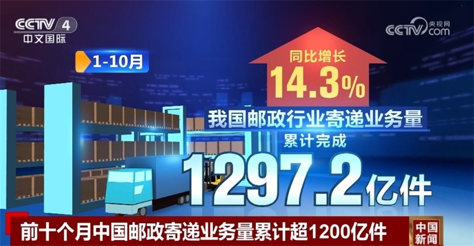 ?????? 前十個月中國郵政寄遞業(yè)務(wù)量累計超1200億件