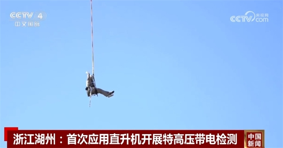 ?????? 當天,一架直升機吊掛著身穿全套屏蔽服的作業(yè)人員,精準投放到帶電運行的金塘線上,對設(shè)備進行檢測。整個過程用時30分鐘,這在全國尚屬首次。?