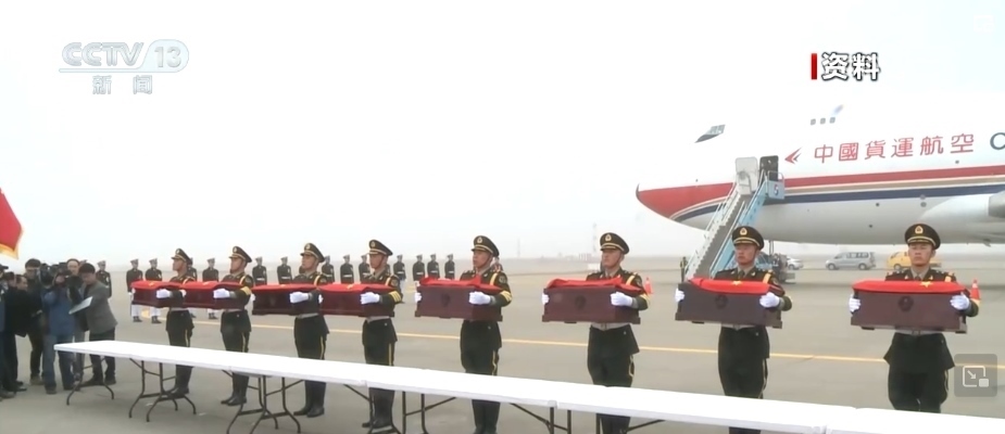 2014年3月28日,首批437位中國人民志愿軍烈士的遺骸從韓國仁川踏上回家之路。中國空軍派出兩架殲-11B戰(zhàn)機迎接護航。中國政府在沈陽桃仙國際機場舉行了隆重的迎接儀式,437位烈士的遺骸被安放在沈陽抗美援朝烈士陵園,半個多世紀埋骨他鄉(xiāng)的英魂終歸故里。