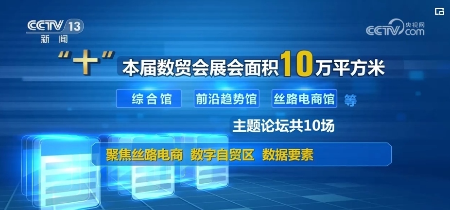 “十”:本屆數(shù)貿(mào)會(huì)展會(huì)面積10萬(wàn)平方米,分為綜合館、前沿趨勢(shì)館、絲路電商館等。主題論壇共10場(chǎng),聚焦絲路電商、數(shù)字自貿(mào)區(qū)、數(shù)據(jù)要素治理等主題。