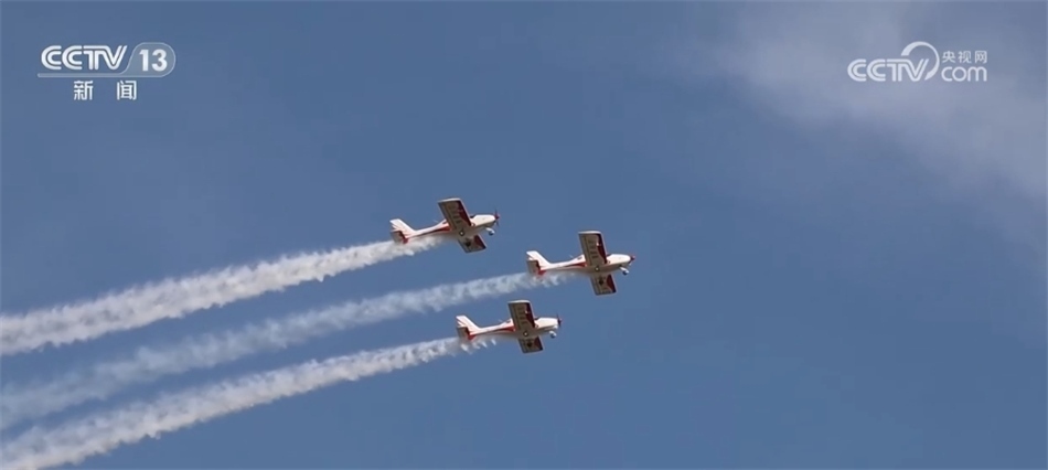 總臺(tái)央視記者 吳天白:在我身后停放的20架通用飛機(jī)與飛行表演中“山河”飛行表演隊(duì)所駕駛的飛機(jī)是同款。這款飛機(jī)不僅動(dòng)力強(qiáng)勁、性能出色,還是我國首款自主研發(fā)制造可用于飛行表演的運(yùn)動(dòng)型通用飛機(jī)。