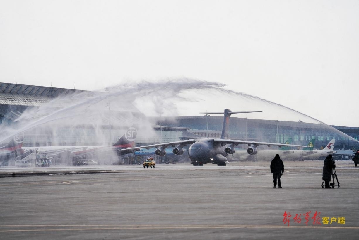 運(yùn)-20專機(jī)通過“水門”。中國軍網(wǎng)記者劉丹 攝
