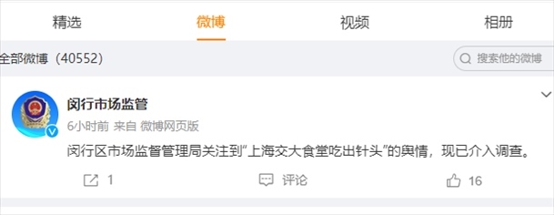 ·上海交通大學(xué)回應(yīng)“食堂飯菜里吃出1.5厘米針頭”:給豬打疫苗的針斷在骨頭里。上海閔行區(qū)市場監(jiān)督管理局已介入調(diào)查。