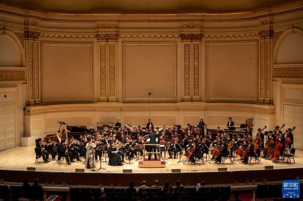 24日晚,中央音樂(lè)學(xué)院交響樂(lè)團(tuán)時(shí)隔四年重返美國(guó)紐約卡內(nèi)基音樂(lè)廳,為觀眾帶來(lái)中國(guó)當(dāng)代作曲家的最新作品。多部作品取材于中國(guó)古典詩(shī)詞和傳統(tǒng)哲學(xué)著作,展現(xiàn)出古箏、竹笛等中國(guó)傳統(tǒng)民族樂(lè)器與西洋樂(lè)器的碰撞,奏響東西方文化交融的動(dòng)人樂(lè)章。