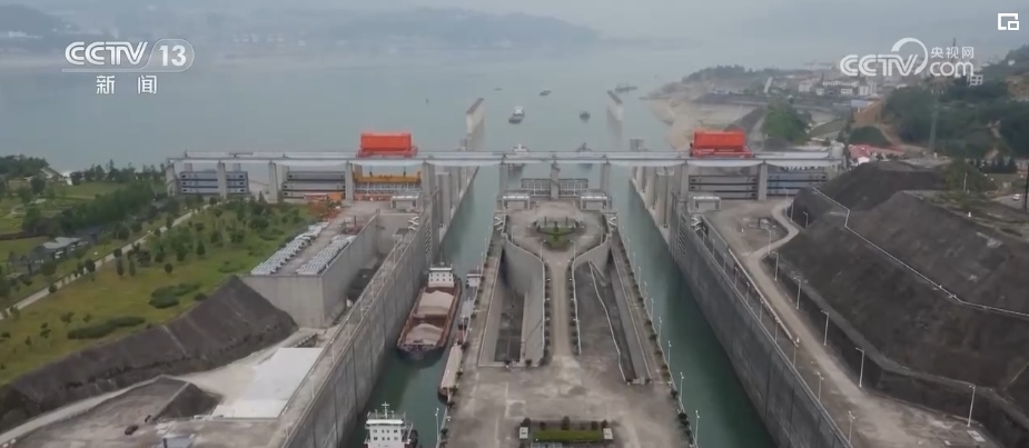 其中,三峽船閘運(yùn)行10148閘次,通過(guò)量1.56億噸;三峽升船機(jī)運(yùn)行4187廂次,通過(guò)量437.89萬(wàn)噸。