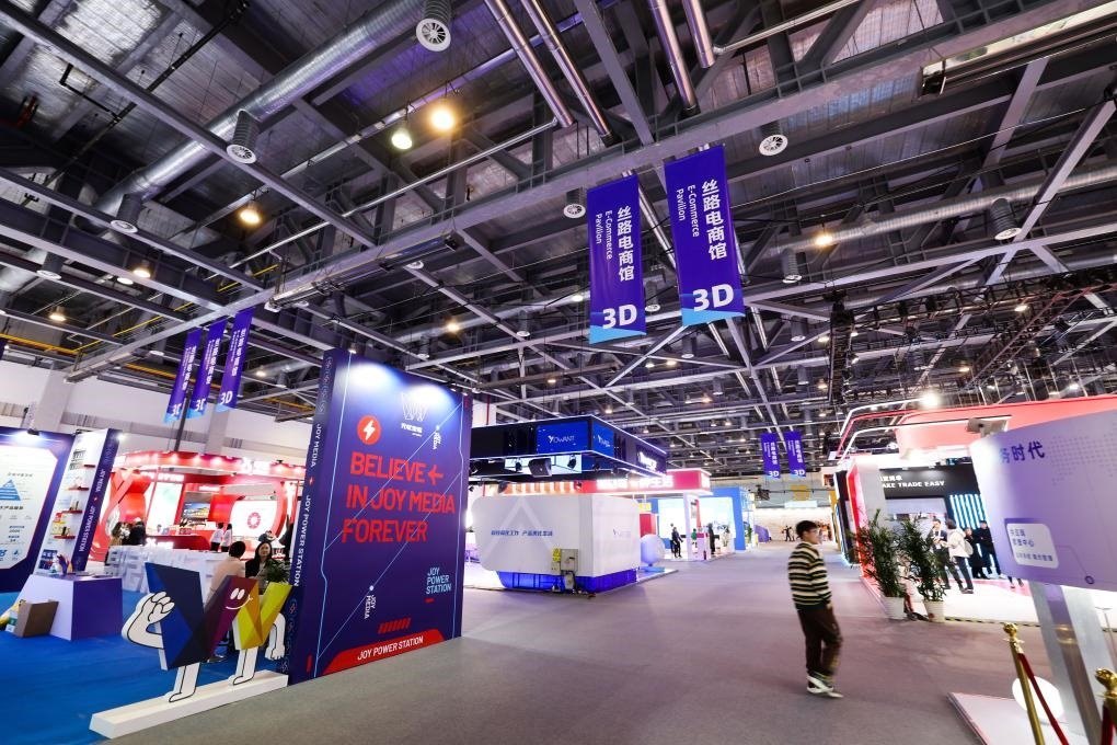 這是11月23日拍攝的第二屆全球數(shù)字貿(mào)易博覽會(huì)絲路電商館。新華社記者 徐昱 攝