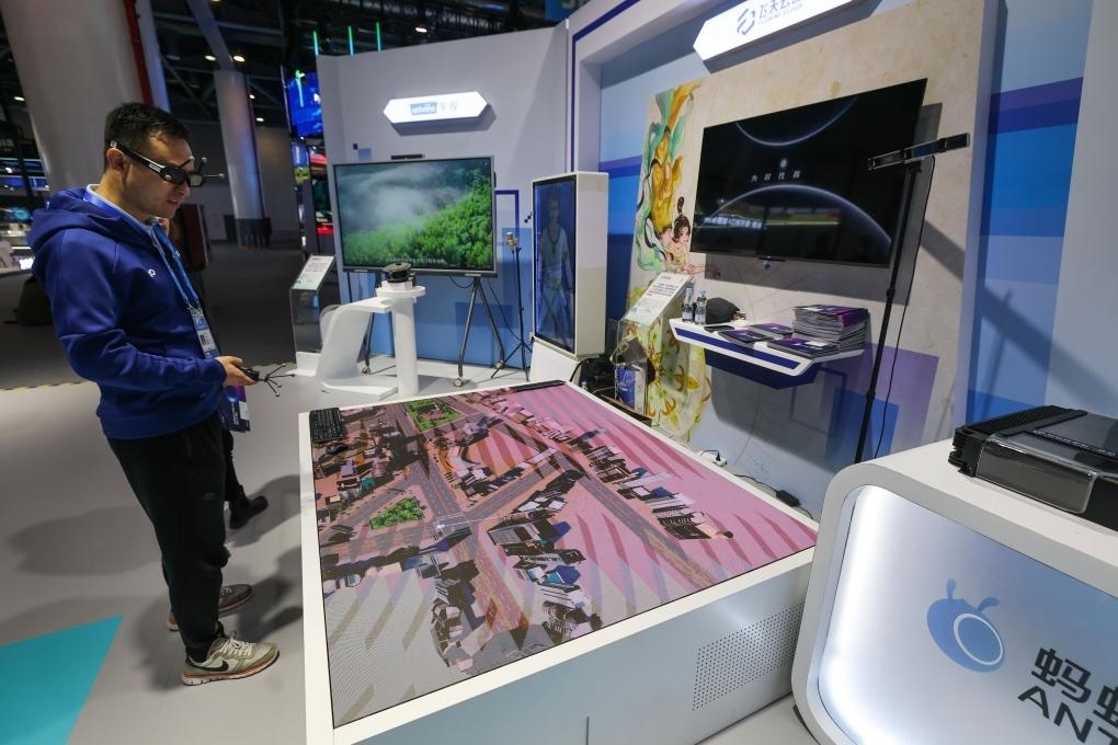 11月23日,在第二屆全球數(shù)字貿(mào)易博覽會(huì)上,參觀者戴上VR眼鏡漫游虛擬城市。新華社記者 徐昱 攝