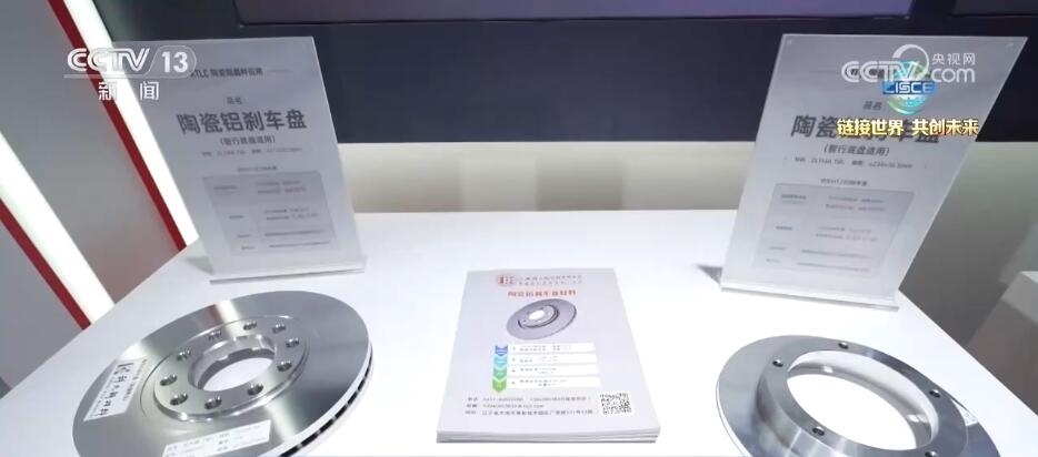 首先,我們來到了這樣一家生產(chǎn)汽車新材料的企業(yè)的展臺。我手上拿的銀色物質(zhì)叫陶瓷鋁晶種,大家肯定要問,它和智能汽車制造有什么關(guān)系呢?答案就在這一側(cè)。這款就是添加了陶瓷鋁晶種制造而成的剎車盤,這款剎車盤在強(qiáng)度和韌性上有所提升,同時(shí)它的自重也減輕60%。隨著智能化汽車對輕量化的要求越來越高,關(guān)鍵原材料也在不斷創(chuàng)新。可以說陶瓷鋁晶種已經(jīng)成為了汽車輕量化的關(guān)鍵原材料。