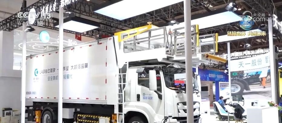 總臺央視記者 張歆:在本屆鏈博會上,我們也看到了許多智能專用車。大家可以看到在我身旁就是一臺智能航空食品專用車,這臺重量達(dá)到21噸左右的“大塊頭”裝了許多個(gè)雷達(dá),通過5G的算法就能夠?qū)崿F(xiàn)無人駕駛和無人作業(yè)。