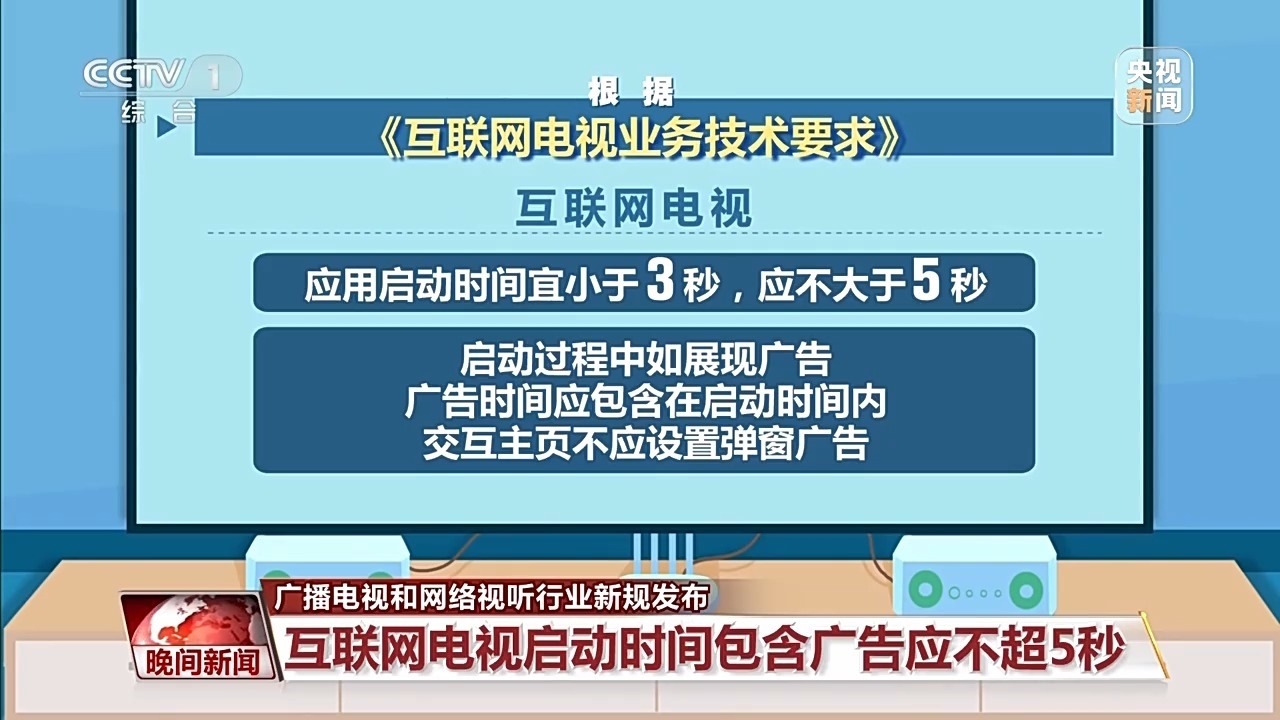 互聯(lián)網(wǎng)電視啟動時(shí)間包含廣告應(yīng)不超5秒
