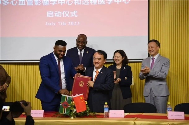 吳德熙半年可見的朋友圈里,唯一一條動(dòng)態(tài)發(fā)自多米尼克。那是2023年7月7日,中國(guó)-多米尼克心血管影像學(xué)中心和遠(yuǎn)程醫(yī)學(xué)中心成立的日子。為了這個(gè)了不起的時(shí)刻,時(shí)隔大半年,他再次跨過(guò)半個(gè)地球,登上這座小島。