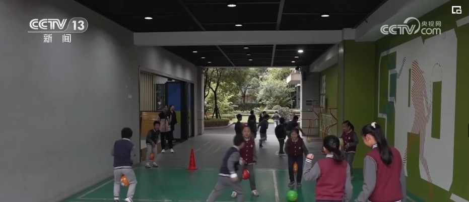 山東濰坊市坊子區(qū)實驗學(xué)校利用戶外空地,開發(fā)了一系列益智類和傳統(tǒng)民間游戲等地面游戲。湖南長沙的清水塘江灣小學(xué),學(xué)校通過在每個教室門口設(shè)置摸高“打卡”點、走道鋪裝“跳房子”九宮格等方法,創(chuàng)造出很多隨處可玩的場所。