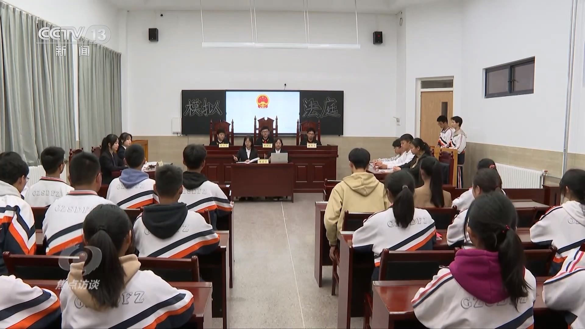 貴州師大附中高二學(xué)生朱培源正在參加學(xué)校組織的“模擬法庭”,他模擬的角色是審判長。這次“庭審”模擬的是前幾年一起關(guān)于公民受教育權(quán)受到侵害的案件:某鄉(xiāng)鎮(zhèn)的一個家庭放任正在讀初中的孩子輟學(xué),經(jīng)多次走訪溝通無效后,鎮(zhèn)人民政府一紙訴狀把家長告上法庭。在“模擬法庭”上,朱培源宣讀了憲法中的相關(guān)條文,并模擬宣判。