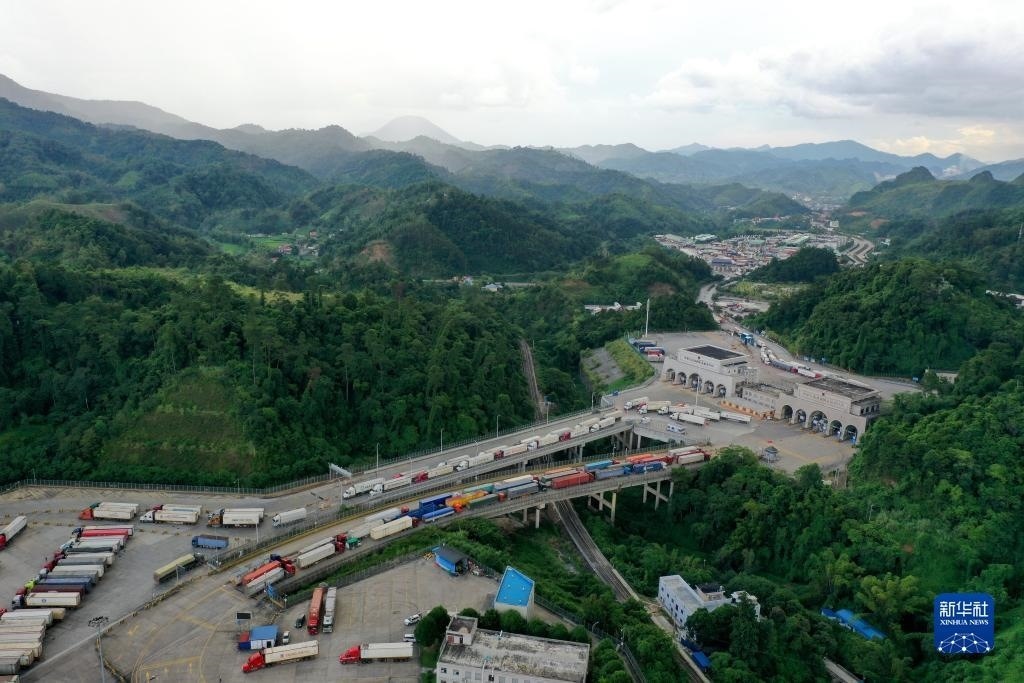 這是繁忙的廣西憑祥友誼關(guān)口岸(2023年9月9日攝,無人機照片)。新華社記者 曹祎銘 攝