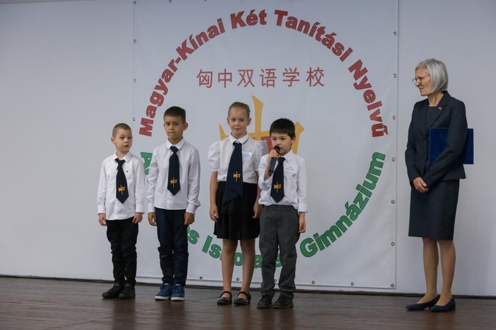 2022年9月1日,在匈牙利首都布達(dá)佩斯,學(xué)生們參加匈中雙語學(xué)校新學(xué)年開學(xué)典禮。