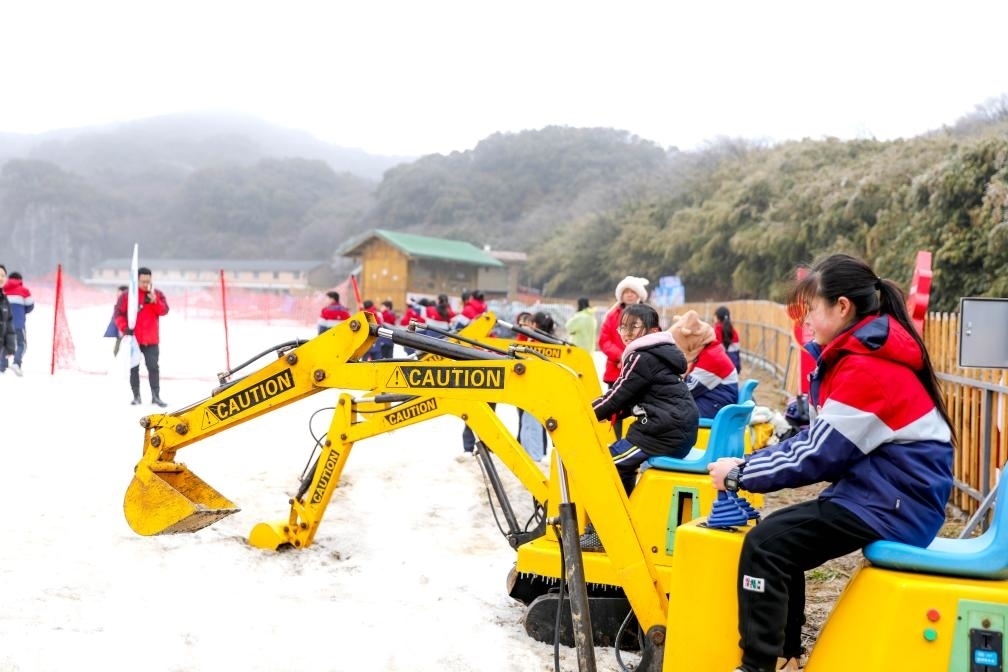 重慶市南川區(qū)金佛山滑雪場(chǎng)里,學(xué)生們正在參加冰雪研學(xué)活動(dòng)。(甘昊旻 攝)