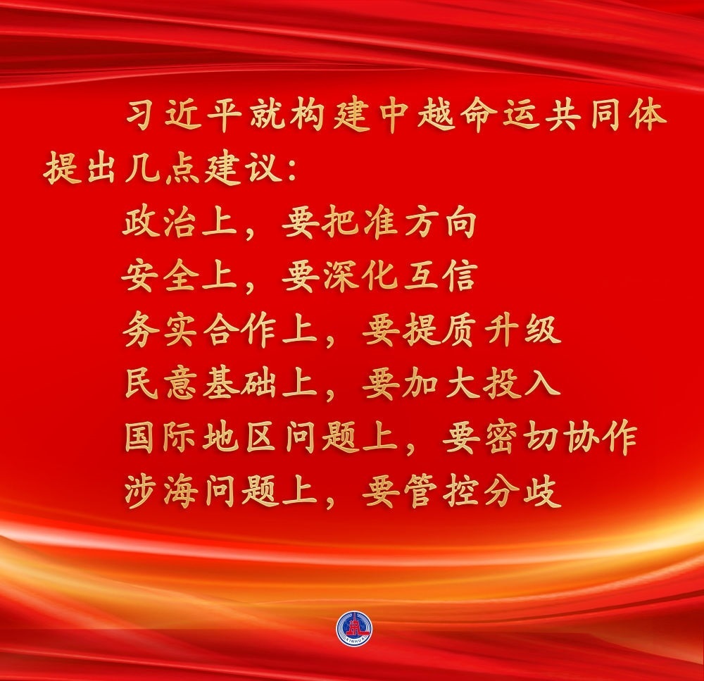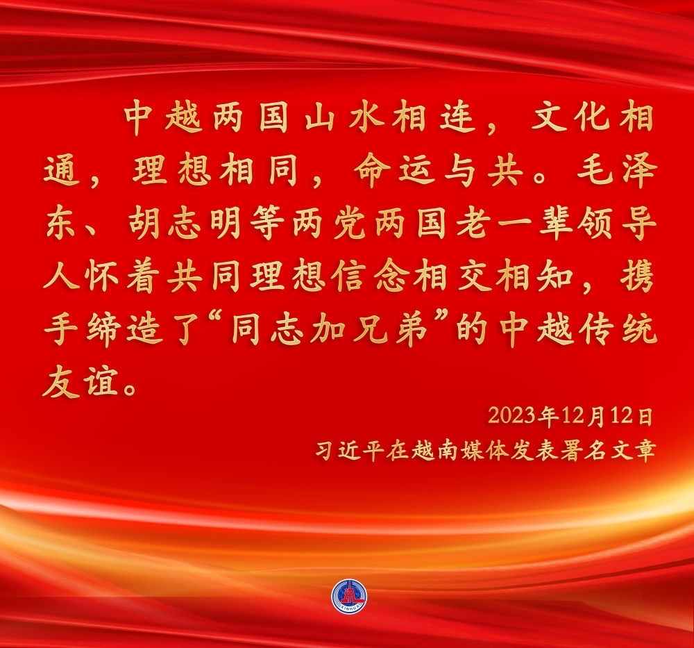 兩位總書(shū)記都認(rèn)為,中越作為友好近鄰,理想相同,理念相通。作為好鄰居、好伙伴、好兄弟、好同志,中越構(gòu)建具有戰(zhàn)略意義的命運(yùn)共同體具有天時(shí)、地利、人和的獨(dú)特優(yōu)勢(shì)。雙方應(yīng)該繼承老一輩領(lǐng)導(dǎo)人締結(jié)的傳統(tǒng)友誼,共同努力構(gòu)建命運(yùn)共同體,走好各自的現(xiàn)代化道路,實(shí)現(xiàn)互利共贏、美美與共,造福兩國(guó)人民,也為地區(qū)和平與繁榮作出積極貢獻(xiàn)。