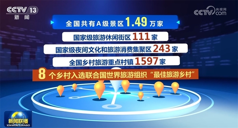 豐富優(yōu)質旅游產品供給。目前全國共有A級景區(qū)1.49萬家,國家級旅游休閑街區(qū)111家,國家級夜間文化和旅游消費集聚區(qū)243家,全國鄉(xiāng)村旅游重點村鎮(zhèn)1597家,8個鄉(xiāng)村入選聯(lián)合國世界旅游組織“最佳旅游鄉(xiāng)村”,成為文化和旅游賦能鄉(xiāng)村振興典型案例。