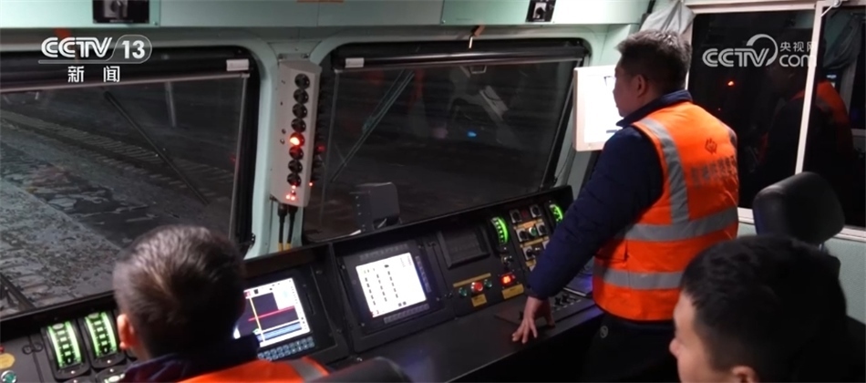 總臺央視記者 張叢婧:我現(xiàn)在是在一列滿載著將近一萬噸煤炭的貨運火車上,正在駛往黃驊港方向。這列車從神東礦區(qū)裝滿煤之后,一路往東,現(xiàn)在到達了它途中的第一個編組站,在這里會進行更換車頭的工作,因為這往后的路會更加崎嶇難走,我們可以看到現(xiàn)在路上是有積雪,所以需要在這換一個更大功率的車頭,才能夠帶得動它身后這一百多節(jié)車廂去走這段更艱難的路?,F(xiàn)在隨著這個車緩緩進站,馬上就要去進行編組任務(wù)。