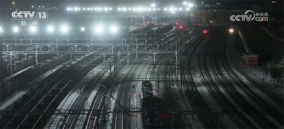 總臺央視記者 張叢婧:我這一下來,明顯感覺到冷了特別多,現(xiàn)在司機師傅就在這準備做換車頭的工作。工作人員告訴我,在這個編組站里,現(xiàn)在幾乎每隔10分鐘就會有一列車編好組往外發(fā)出。我在車站里走了一會,就感覺已經(jīng)要被凍透了,大家可以看一下,現(xiàn)在這里的溫度是有零下將近24攝氏度。