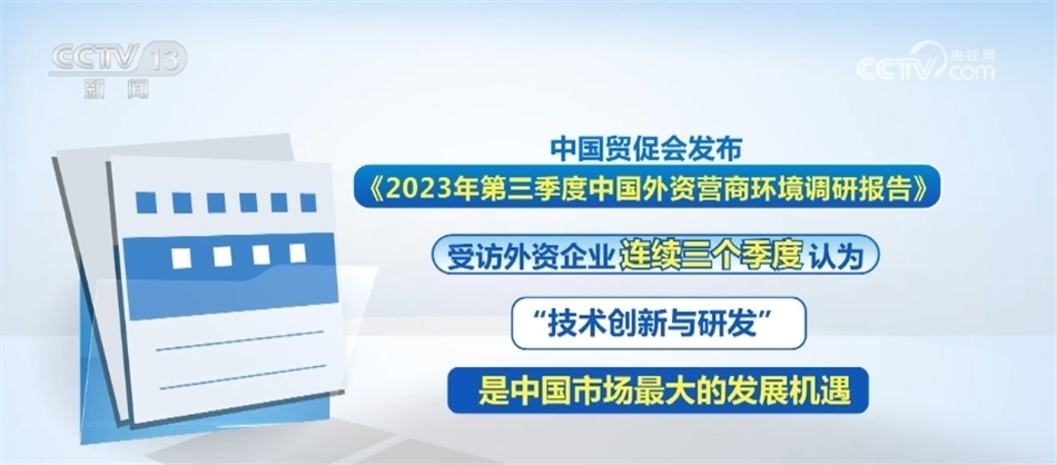 布局未來,如今,越來越多外資企業(yè)正在從“在中國制造”走向“在中國創(chuàng)造”。中國德國商會的調(diào)查報告就顯示,53%的德國企業(yè)計劃在未來兩年內(nèi)增加在中國本土化研發(fā)的職能;而中國貿(mào)促會發(fā)布的《2023年第三季度中國外資營商環(huán)境調(diào)研報告》則顯示,受訪外資企業(yè)連續(xù)三季度認為“技術創(chuàng)新與研發(fā)”是中國市場最大的發(fā)展機遇。