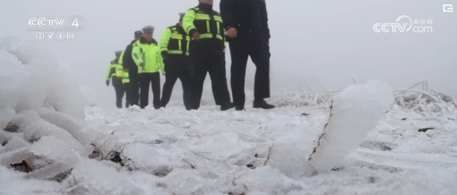 南方多地則遭遇了低溫凝凍天氣。在貴州三都縣某縣道,民警在對凝凍路段展開巡查工作時(shí)發(fā)現(xiàn),不少車輛在坡路上頻頻打滑。其中一輛自駕車發(fā)生甩尾,滑入道路排水渠。