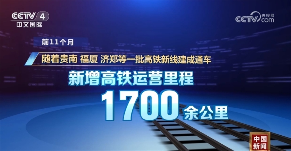今年以來,國鐵集團以聯(lián)網(wǎng)、補網(wǎng)、強鏈為重點,高質量推進鐵路規(guī)劃建設。前11個月,全國鐵路完成固定資產投資同比增長7.4%。隨著貴南、福廈、濟鄭等一批高鐵新線建成通車,新增高鐵運營里程1700余公里,“八縱八橫”高鐵網(wǎng)越織越密。