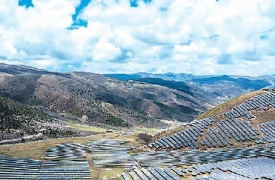電站通過500kV輸電線路接入50公里外、裝機300萬千瓦、總庫容108億立方米的兩河口水電站,實現(xiàn)光伏發(fā)電和水電的“打捆”送出。電站投產(chǎn)后年平均發(fā)電量20億度,每年可節(jié)約標準煤超60萬噸、減少二氧化碳排放超160萬噸。
